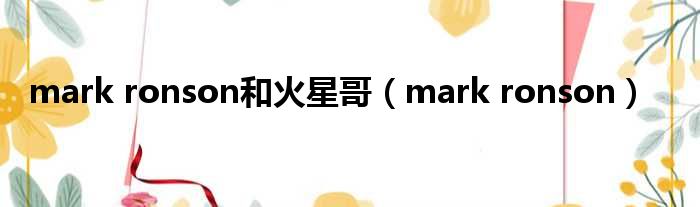 大家好,今天小六子来为大家解答以下的问题,关于mark ronson和火星哥,mark ronson这个很多人还不知道,现在让我们一起来看看吧!
