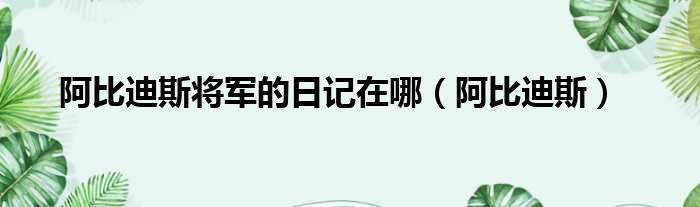 大家好,今天小六子来为大家解答以下的问题,关于阿比迪斯将军的日记在哪,阿比迪斯这个很多人还不知道,现在让我们一起来看看吧!