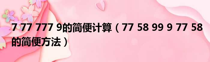 大家好,今天小六子来为大家解答以下的问题,关于7 77 777 9的简便计算,77 58 99 9 77 58的简便方法这个很多人还不知道,现在让我们一起来看看吧!