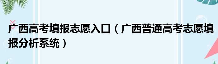 大家好,今天小六子来为大家解答以下的问题,关于广西高考填报志愿入口,广西普通高考志愿填报分析系统这个很多人还不知道,现在让我们一起来看看吧!