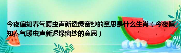 大家好,今天小六子来为大家解答以下的问题,关于今夜偏知春气暖虫声新透绿窗纱的意思是什么生肖,今夜偏知春气暖虫声新透绿窗纱的意思这个很多人还不知道,现在让我们一起来看看吧!