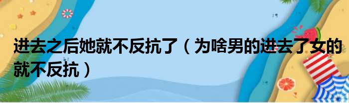 大家好,今天小六子来为大家解答以下的问题,关于进去之后她就不反抗了,为啥男的进去了女的就不反抗这个很多人还不知道,现在让我们一起来看看吧!