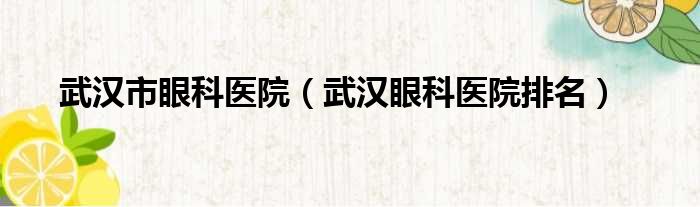 大家好,今天小六子来为大家解答以下的问题,关于武汉市眼科医院,武汉眼科医院排名这个很多人还不知道,现在让我们一起来看看吧!