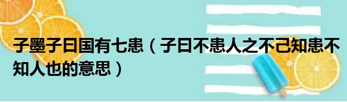 大家好,今天小六子来为大家解答以下的问题,关于子墨子曰国有七患,子曰不患人之不己知患不知人也的意思这个很多人还不知道,现在让我们一起来看看吧!