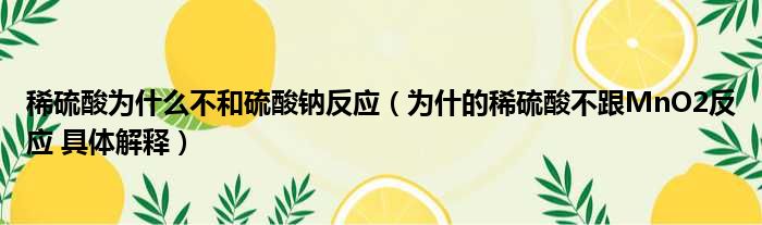 大家好,今天小六子来为大家解答以下的问题,关于稀硫酸为什么不和硫酸钠反应,为什的稀硫酸不跟MnO2反应 具体解释这个很多人还不知道,现在让我们一起来看看吧!