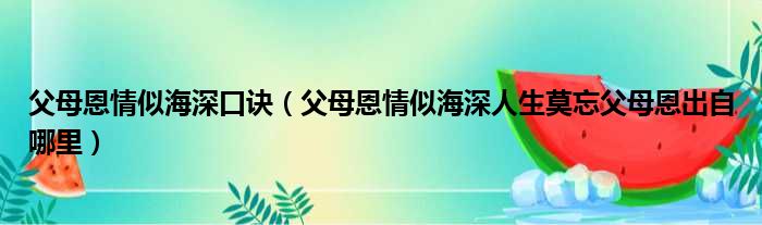 大家好,今天小六子来为大家解答以下的问题,关于父母恩情似海深口诀,父母恩情似海深人生莫忘父母恩出自哪里这个很多人还不知道,现在让我们一起来看看吧!