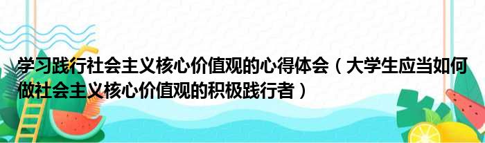 大家好,今天小六子来为大家解答以下的问题,关于学习践行社会主义核心价值观的心得体会,大学生应当如何做社会主义核心价值观的积极践行者这个很多人还不知道,现在让我们一起来看看吧!