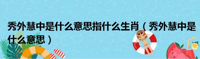 大家好,今天小六子来为大家解答以下的问题,关于秀外慧中是什么意思指什么生肖,秀外慧中是什么意思这个很多人还不知道,现在让我们一起来看看吧!