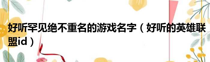 大家好,今天小六子来为大家解答以下的问题,关于好听罕见绝不重名的游戏名字,好听的英雄联盟id这个很多人还不知道,现在让我们一起来看看吧!