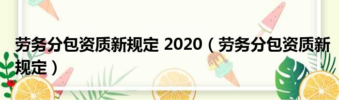大家好,今天小六子来为大家解答以下的问题,关于劳务分包资质新规定 2020,劳务分包资质新规定这个很多人还不知道,现在让我们一起来看看吧!