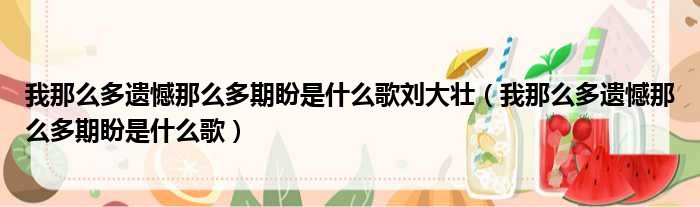 大家好,今天小六子来为大家解答以下的问题,关于我那么多遗憾那么多期盼是什么歌刘大壮,我那么多遗憾那么多期盼是什么歌这个很多人还不知道,现在让我们一起来看看吧!