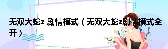 无双大蛇z 剧情模式 无双大蛇z剧情模式全开 网络整理 经验 2023-07-06 15:50:09 大家好,今天小六子来为大家解答以下的问题,关于无双大蛇z 剧情模式,无双大蛇z剧情模式全开这个很多人还不知道,现在让我们一起来看看吧!1、有些人物要在某些关卡达成某些条件才能解锁的。2、具体可以百度都有。本文分享完毕,希望对你有所帮助。 声明:免责声明:本文来源网友投稿及网络整合仅代表文章作者的个人观点,与本站无关。其原创性、真实性以及文中陈述文字和内容未经本站证实,对本文以及其中全部或者部分内容文字的真实性、完整性和原创性本站不作任何保证或承诺,请读者仅作参考,并自行核实相关内容。投诉邮箱:1765130767@qq.com。 本文地址:https://www.anfu123.com/jingyan/88423.html