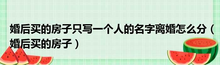 大家好,今天小六子来为大家解答以下的问题,关于婚后买的房子只写一个人的名字离婚怎么分,婚后买的房子这个很多人还不知道,现在让我们一起来看看吧!