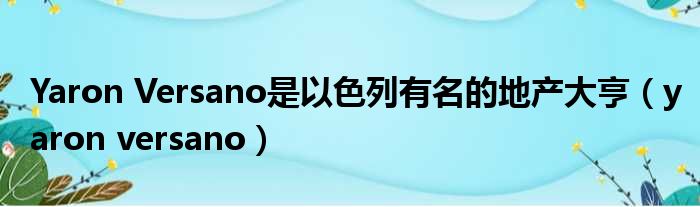 大家好,今天小六子来为大家解答以下的问题,关于Yaron Versano是以色列有名的地产大亨,yaron versano这个很多人还不知道,现在让我们一起来看看吧!
