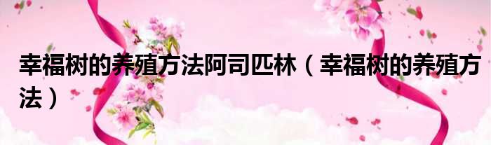 大家好,今天小六子来为大家解答以下的问题,关于幸福树的养殖方法阿司匹林,幸福树的养殖方法这个很多人还不知道,现在让我们一起来看看吧!