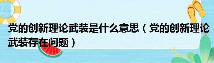 大家好,今天小六子来为大家解答以下的问题,关于党的创新理论武装是什么意思,党的创新理论武装存在问题这个很多人还不知道,现在让我们一起来看看吧!