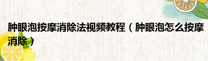 大家好,今天小六子来为大家解答以下的问题,关于肿眼泡按摩消除法视频教程,肿眼泡怎么按摩消除这个很多人还不知道,现在让我们一起来看看吧!