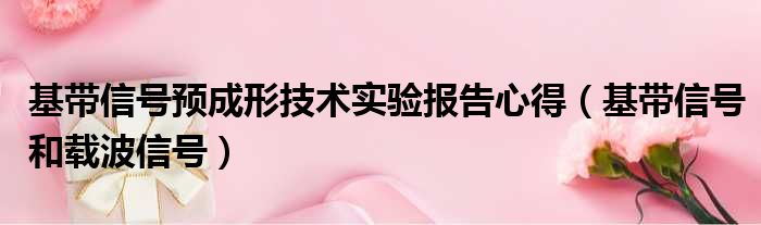 大家好,今天小六子来为大家解答以下的问题,关于基带信号预成形技术实验报告心得,基带信号和载波信号这个很多人还不知道,现在让我们一起来看看吧!