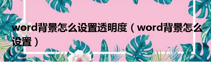 大家好,今天小六子来为大家解答以下的问题,关于word背景怎么设置透明度,word背景怎么设置这个很多人还不知道,现在让我们一起来看看吧!
