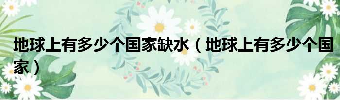 大家好,今天小六子来为大家解答以下的问题,关于地球上有多少个国家缺水,地球上有多少个国家这个很多人还不知道,现在让我们一起来看看吧!