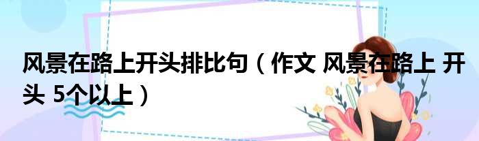 大家好,今天小六子来为大家解答以下的问题,关于风景在路上开头排比句,作文 风景在路上 开头 5个以上这个很多人还不知道,现在让我们一起来看看吧!