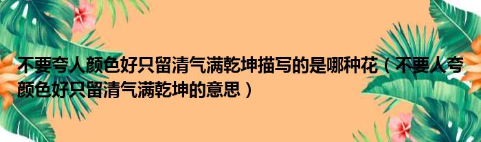 大家好,今天小六子来为大家解答以下的问题,关于不要夸人颜色好只留清气满乾坤描写的是哪种花,不要人夸颜色好只留清气满乾坤的意思这个很多人还不知道,现在让我们一起来看看吧!