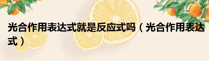 大家好,今天小六子来为大家解答以下的问题,关于光合作用表达式就是反应式吗,光合作用表达式这个很多人还不知道,现在让我们一起来看看吧!