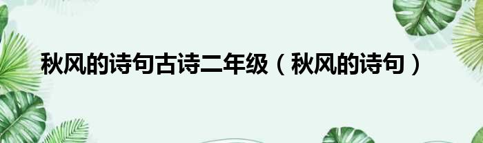 大家好,今天小六子来为大家解答以下的问题,关于秋风的诗句古诗二年级,秋风的诗句这个很多人还不知道,现在让我们一起来看看吧!
