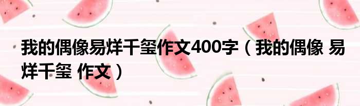 大家好,今天小六子来为大家解答以下的问题,关于我的偶像易烊千玺作文400字,我的偶像 易烊千玺 作文这个很多人还不知道,现在让我们一起来看看吧!