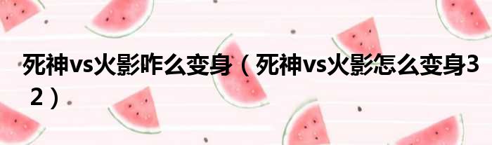 大家好,今天小六子来为大家解答以下的问题,关于死神vs火影咋么变身,死神vs火影怎么变身3 2这个很多人还不知道,现在让我们一起来看看吧!