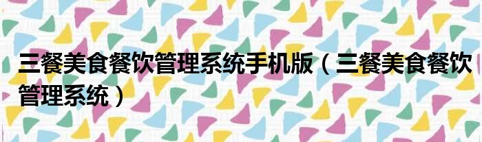 大家好,今天小六子来为大家解答以下的问题,关于三餐美食餐饮管理系统手机版,三餐美食餐饮管理系统这个很多人还不知道,现在让我们一起来看看吧!