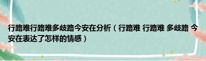 大家好,今天小六子来为大家解答以下的问题,关于行路难行路难多歧路今安在分析,行路难 行路难 多歧路 今安在表达了怎样的情感这个很多人还不知道,现在让我们一起来看看吧!