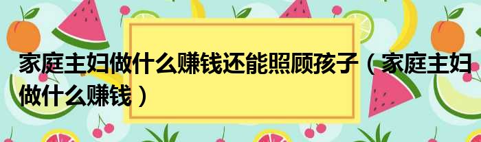大家好,今天小六子来为大家解答以下的问题,关于家庭主妇做什么赚钱还能照顾孩子,家庭主妇做什么赚钱这个很多人还不知道,现在让我们一起来看看吧!