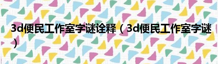 大家好,今天小六子来为大家解答以下的问题,关于3d便民工作室字谜诠释,3d便民工作室字谜这个很多人还不知道,现在让我们一起来看看吧!