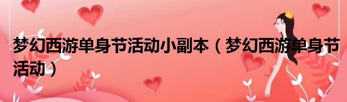 大家好,今天小六子来为大家解答以下的问题,关于梦幻西游单身节活动小副本,梦幻西游单身节活动这个很多人还不知道,现在让我们一起来看看吧!