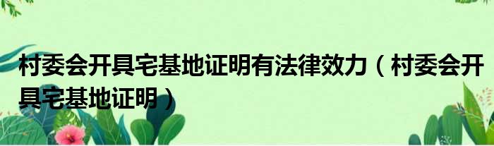大家好,今天小六子来为大家解答以下的问题,关于村委会开具宅基地证明有法律效力,村委会开具宅基地证明这个很多人还不知道,现在让我们一起来看看吧!