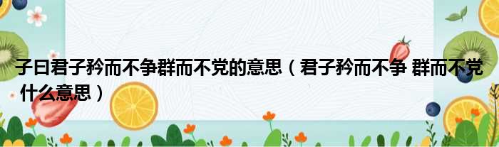 2、原文:出自 春秋 孔子《论语 卫灵公》子曰:“君子矜而不争,群而不党。