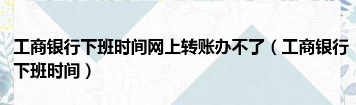 大家好,今天小六子来为大家解答以下的问题,关于工商银行下班时间网上转账办不了,工商银行下班时间这个很多人还不知道,现在让我们一起来看看吧!