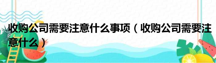 大家好,今天小六子来为大家解答以下的问题,关于收购公司需要注意什么事项,收购公司需要注意什么这个很多人还不知道,现在让我们一起来看看吧!