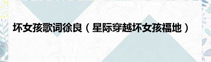 坏女孩歌词徐良 星际穿越坏女孩福地 网络整理 经验 2023-07-08 16:45:07 大家好,今天小六子来为大家解答以下的问题,关于坏女孩歌词徐良,星际穿越坏女孩福地这个很多人还不知道,现在让我们一起来看看吧!1、星际女当家 星际贵女娶夫记 穿越女的星际生活。本文分享完毕,希望对你有所帮助。 声明:免责声明:本文来源网友投稿及网络整合仅代表文章作者的个人观点,与本站无关。其原创性、真实性以及文中陈述文字和内容未经本站证实,对本文以及其中全部或者部分内容文字的真实性、完整性和原创性本站不作任何保证或承诺,请读者仅作参考,并自行核实相关内容。投诉邮箱:1765130767@qq.com。 本文地址:https://www.anfu123.com/jingyan/89572.html