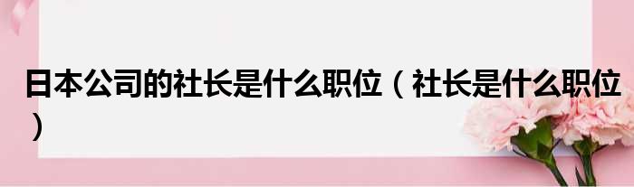 大家好,今天小六子来为大家解答以下的问题,关于日本公司的社长是什么职位,社长是什么职位这个很多人还不知道,现在让我们一起来看看吧!