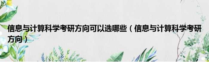 大家好,今天小六子来为大家解答以下的问题,关于信息与计算科学考研方向可以选哪些,信息与计算科学考研方向这个很多人还不知道,现在让我们一起来看看吧!