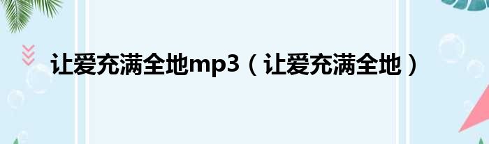 大家好,今天小六子来为大家解答以下的问题,关于让爱充满全地mp3,让爱充满全地这个很多人还不知道,现在让我们一起来看看吧!