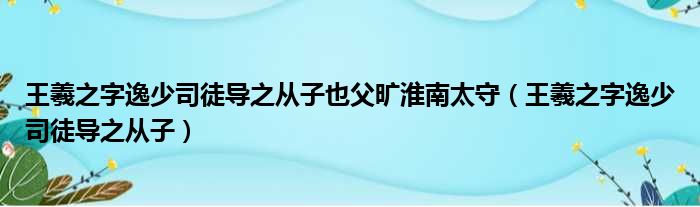 大家好,今天小六子来为大家解答以下的问题,关于王羲之字逸少司徒导之从子也父旷淮南太守,王羲之字逸少司徒导之从子这个很多人还不知道,现在让我们一起来看看吧!