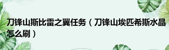大家好,今天小六子来为大家解答以下的问题,关于刀锋山斯比雷之翼任务,刀锋山埃匹希斯水晶怎么刷这个很多人还不知道,现在让我们一起来看看吧!