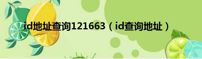 大家好,今天小六子来为大家解答以下的问题,关于id地址查询121663,id查询地址这个很多人还不知道,现在让我们一起来看看吧!