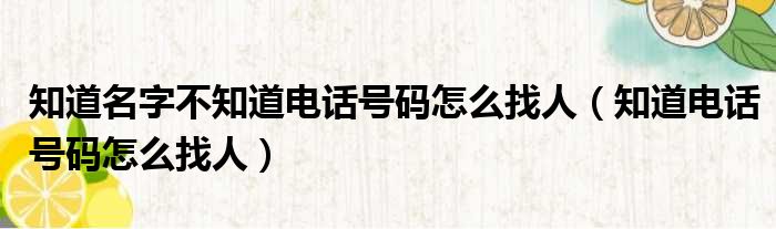大家好,今天小六子来为大家解答以下的问题,关于知道名字不知道电话号码怎么找人,知道电话号码怎么找人这个很多人还不知道,现在让我们一起来看看吧!