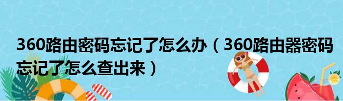 大家好,今天小六子来为大家解答以下的问题,关于360路由密码忘记了怎么办,360路由器密码忘记了怎么查出来这个很多人还不知道,现在让我们一起来看看吧!