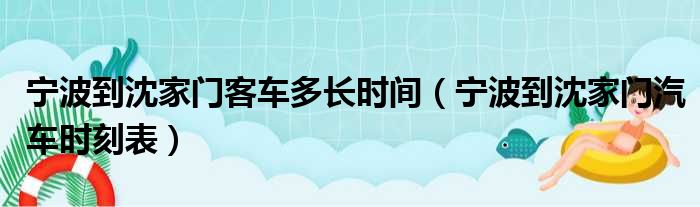 大家好,今天小六子来为大家解答以下的问题,关于宁波到沈家门客车多长时间,宁波到沈家门汽车时刻表这个很多人还不知道,现在让我们一起来看看吧!