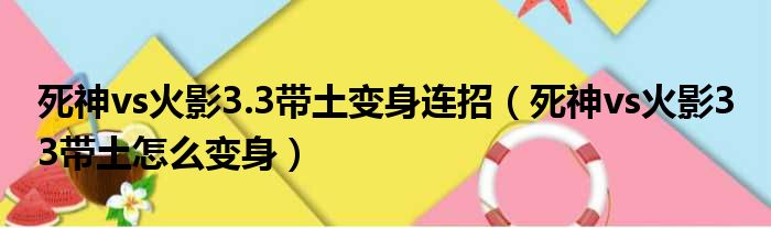 大家好,今天小六子来为大家解答以下的问题,关于死神vs火影3.3带土变身连招,死神vs火影3 3带土怎么变身这个很多人还不知道,现在让我们一起来看看吧!